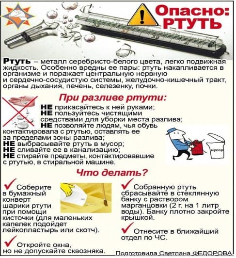 Соблюдайте последовательность действий обязательных в случае разлива любого количества ртути в помещении: